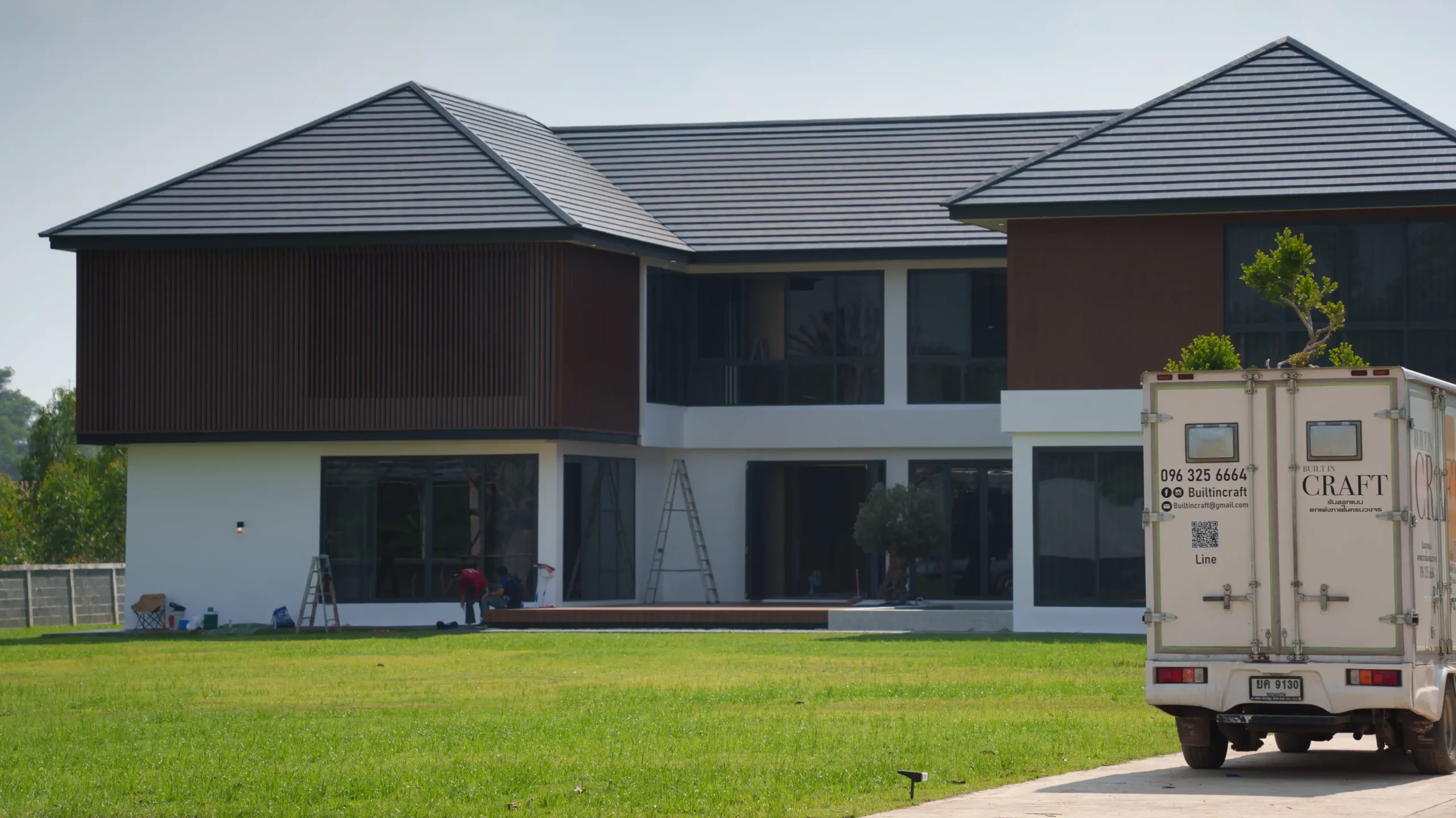 จากความฝันของคุณน้ำฝน สู่แรงบันดาลใจของทีม Built In Craft Factory – ออกแบบภายใน ขอนแก่น ซึ่งหลังนี้ทีมงานได้โจทย์หลักเป็นการออกแบบพื้นที่ของการพักผ่อนให้เหมือนได้อยู่รีสอร์ทหรู แต่ยังคงมีความสมดุลระหว่างความเรียบง่าย และความอบอุ่น Collection: Grand Resort SanctuaryStyle: Luxury Modern WarmthDesign: Built In Craft Factory เราออกแบบดีไซน์ให้เน้นพื้นที่โถงเปิดรับแสงธรรมชาติผ่านกระจกสูง 8